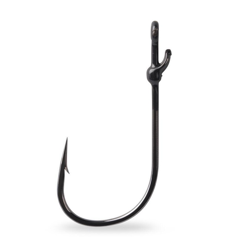 The Grip-Pin Max hook is designed for soft plastic worms or swim baits. It features a coated PVC pin that securely anchors the front end of soft plastic lure with a "no slip, no slide" design. It is a perfect setup for fishing a weedless hook point for tha