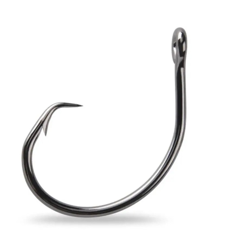 The Mustad Demon Wide Gap Circle Hook is a true circle hook featuring a wide gap, offering the best hookup ratios. The distinct curved shape of the circle hook will, when the fish takes the baited hook and swallows it, ensure that the hook travels to the corner of the mouth or lip, resulting in fewer deep-hooked fish. The circle hook can be used for a whole range of applications from drifting with live bait for Tarpon or trolling for Marlin with bridle rigged to deep-dropping for Swordfish. When live baiting always match the hook size to the bait. Setting the hook is more of a firm tightening of the line, than an actual strike. It is in other words, the ultimate Catch&Release hook. Use it to target Tuna, Marlin, Sailfish, Swordfish, Sharks, Wahoo, Halibut, Amberjack, Permit, Striped Bass or Alligator Gar.