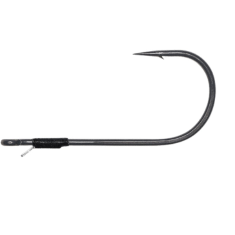 Created specifically for use with heavy braided line and challenging conditions, the Owner Jungle Flipping Hook is constructed with Zo-Wire, a wire material that boasts superior strength compared to traditional high carbon steel wires. This results in smaller hook wire diameters for increased penetration and a Super Needle Point that maintains its sharpness over time. The closed eye design prevents knots from slipping and the bait keeper is securely wrapped on the shank to prevent sliding or spinning. In addition, the hook features Owner’s Silky Gray frictionless finish, promoting effortless hook penetration and bait clearance on hooksets. Available in 3/0 (5 Pk), 4/0 (4 Pk), and 5/0 (4 Pk) sizes.